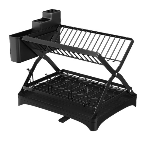 ชั้นเหล็กพับได้สองชั้นที่วางภาชนะบนโต๊ะกันสนิมไม่ขึ้นสนิมประหยัดพื้นที่เคาน์เตอร์ครัวอ่างล้างจาน